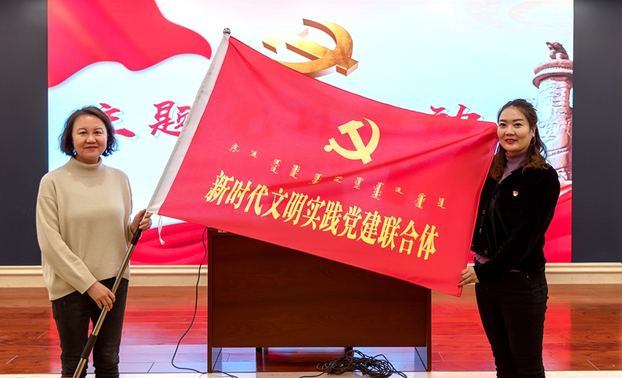 在专题学习会上,内蒙古科学技术普及学会党支部书记丁福华围绕十九届六中全会精神、自治区第十一次党代会精神进行了专题领学。学习结束时,自治区科协二级巡视员、科普部部长高虹向新时代文明实践党建联合体第二期主题党日承办单位——赛罕区人民路街道兴康社区党委书记白霞授旗。