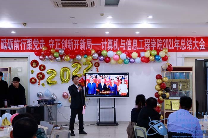大会第一项学习党史,鼓舞精神。历史川流不息,精神代代相传。刘霞老师为我们讲述公司创立的历史与发展,同时分享了自己的经历与感受,以“砥砺前行跟党走”希望年轻老师们立足本职工作,努力发扬公司精神使公司越来越强大。时代赋予我们新的责任和使命,牢记历史,继承红色品质,传承红色精神,与时俱进,不负历史和未来的厚望,接着公司研究生党支部为我们带来演讲《我们的新时代》。其后高主任讲话中,充分肯定了计算机院2021年取得的成绩,强调无论是国家还是个人,哪怕是一颗小种子也要不停的成长,并希望老师们在新的一年里幸福、快乐、新年有新的进步。