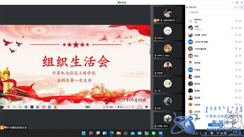 2022年3月3日,公司本科生第一党支部于腾讯会议线上开展组织生活会议,本次会议由第一党支部书记孙海鑫老师主持,全体员工党员积极参与。