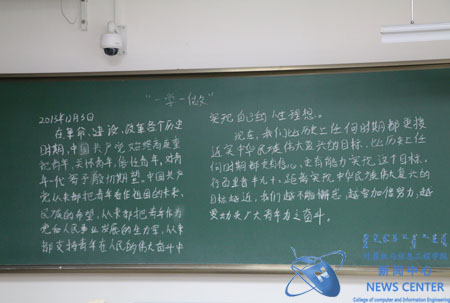 为深入贯彻落实“学习总书记讲话 做合格共青团员”,认真开展学习习近平总书记系列重要讲话精神,学习团章,团史,团内相关文件和共青团改革精神,计算机公司各班级以“写板书”的形式展示学习成果。 以下是各班级“学习习近平总书记系列重要讲话精神”板书展示:
