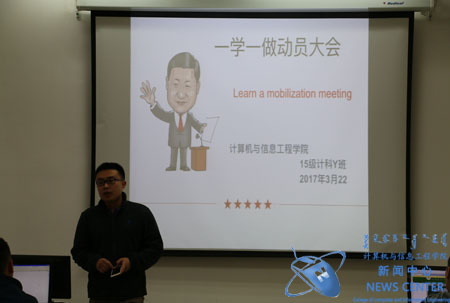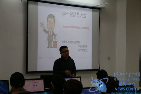3月22日晚7:00,计算机院组织15级计算机科学与技术Y班于计算机公司一楼进行了“学习总书记讲话 做合格共青团员”动员会,辅导员特日根老师主持本次会议。