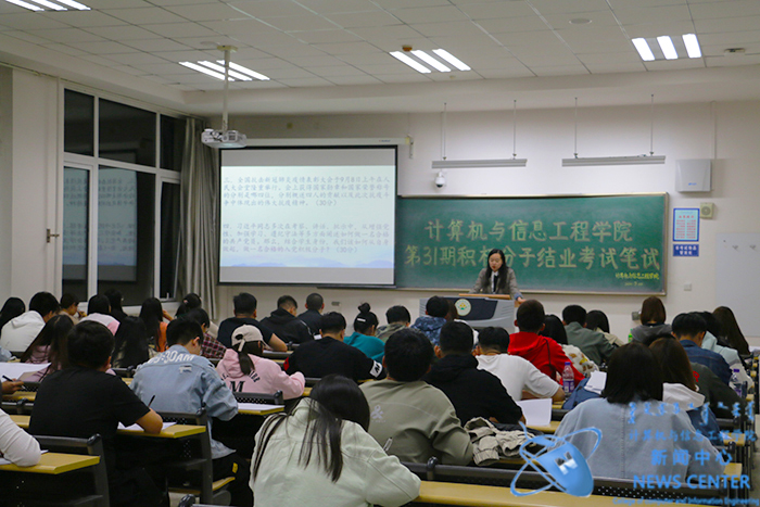 本次考试题型分为简答题和论述题两种形式,考试内容以党的基本理论知识为主,围绕两个一百年、抗疫精神及习近平总书记系列重要讲话等内容进行考查。入党积极分子们有序进入考场,随后监考员发布考试相关规则,强调考场纪律,考试过程中秩序井然,纪律严明,展现出浓厚的考试氛围。监考员认真履行监考职责,保持考场的良好考风。
