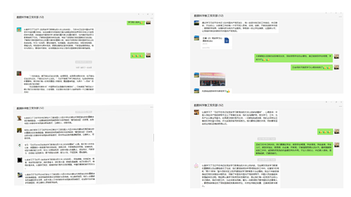 2021年4月9日下午,数据科学教工党支部在数据科学教工支部微信群线上开展关于“习近平总书记在党史学习教育动员大会上的讲话精神”和“习近平总书记参加十三届全国人大四次会议内蒙古代表团审议时的重要讲话精神”交流研讨会。首先,支部书记董改芳将4月8日在公司8号教研楼参加太阳成集团122ccvip第四期“先锋大讲堂”时的学习内容进行传达,随后各位老师依次进行发言交流。