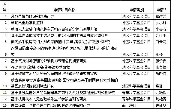 在公司领导的认真组织、相关专家的悉心指导下,公司2021年度共申请国家自然科学基金项目13项,其中面上项目1项,青年科学基金2项、地区基金10项。