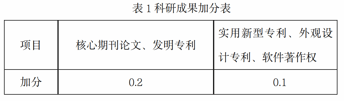 专利、软件著作权等可予以加分(详见表 1)。员工与直系亲属或学历、职称、职务明显高于本人者合作的科研成果仅作为参考,不纳入
