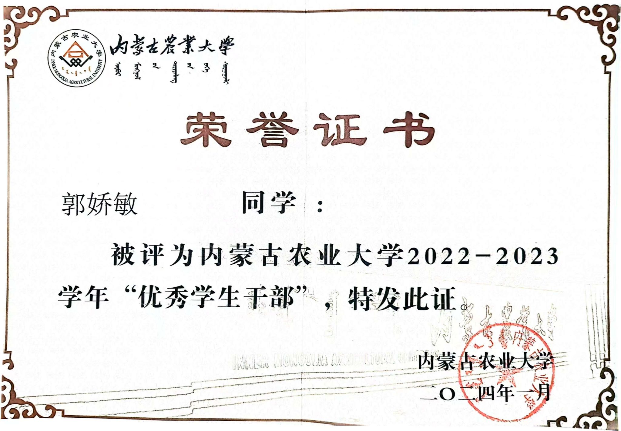 2023年5月获得校级“优秀员工干部”荣誉称号。