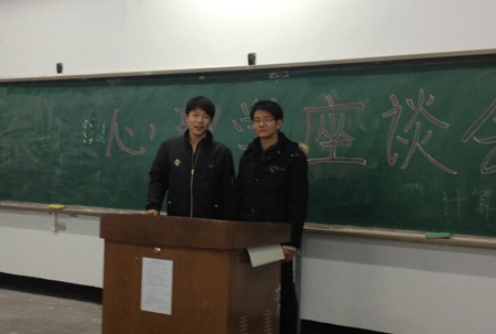 12月8日上午11:00,12级软工一班、信管三班在西区旧教学楼302教室开展了心理座谈会,座谈会由两位班长主持。座谈会上,对于主持人的提问,同学们进行了认真的思考并提出了自己的见解。