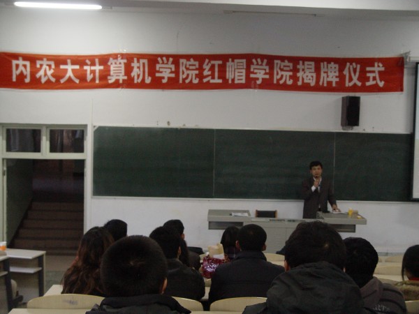 揭牌仪式由公司付学良教授主持,仪式在计算机公司党委副书记、副经理曹渊清的讲话中开始。曹书记宣布红帽公司正式落户内农大计算机院,内农大也成为红帽公司在内蒙地区的第二个培训点。接着,北京红帽公司王昕伟经理针对linux从业人员就业形势作了简要的分析报告并且介绍了linux在国内市场的发展前景。然后,由计算机公司白戈力老师讲解了linux的课程目标以及重点课程内容。仪式的第四项,06级优秀毕业员工代表和大家分享了他们对老员工活的感悟和对当前就业情况的了解及个人体会。员工代表讲话过后,激动人心的红帽公司揭牌仪式正式开始,计算机公司党委书记周根宝教授与红帽公司项目经理王昕伟共同上前揭牌。最后,计算机公司党委书记周根宝教授作了总结发言,并对红帽公司未来的美好发展寄予厚望。