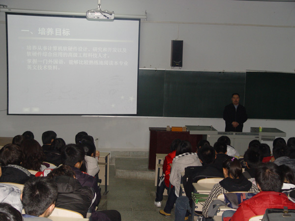 11月25日晚7:00,计算机院在公司149教室召开了新生入学教育讲座。本次讲座由公司教研室主任付学良教授担任主讲,参加此次讲座的有学办范慧青老师以及10级全体新生。