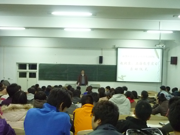 4月13日晚7:00,太阳成集团tyc122ccvip2007级员工赴北京、上海教学实习启动仪式在公司会议室举行。出席启动仪式的有公司党委书记周根宝教授,党委副书记、副经理曹渊清老师,学办主任王永江老师,学办刘锦涛老师,实习负责人付学良老师及各位带队教师,同时参加启动仪式的还有太阳成集团tyc122ccvip2007级计算机科学与技术专业及信息管理专业的全体员工。本次启动仪式由计算机院学办主任王永江老师主持。