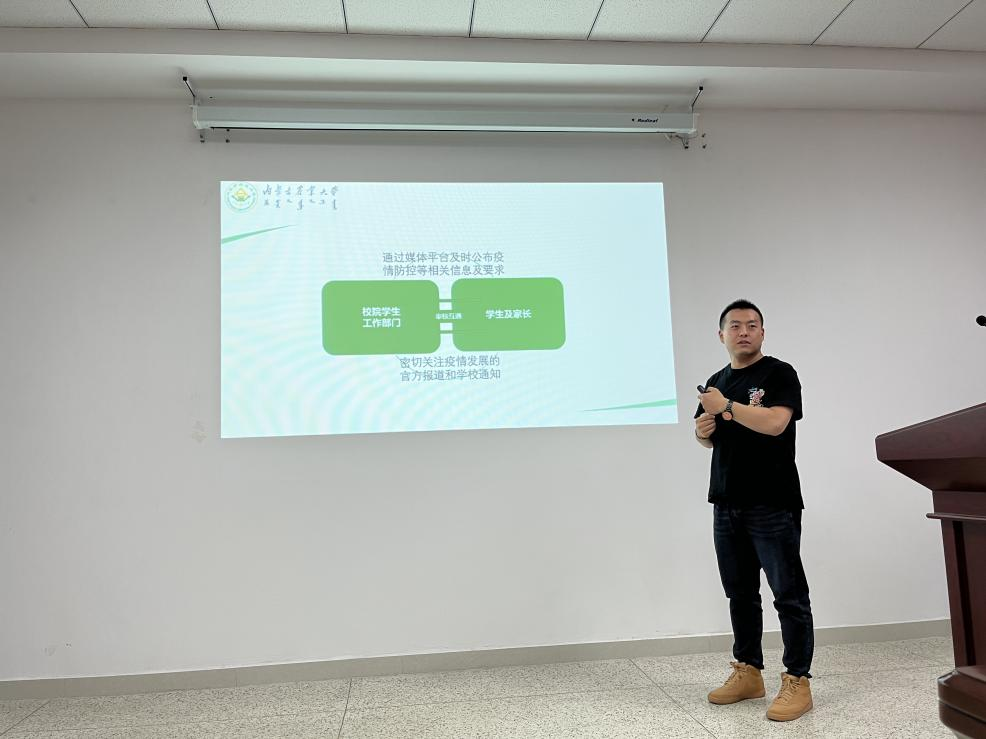 会议先由员工工作办公室副主任孙海鑫针对新冠疫情防控应急处置实操培训展开详细讲解。讲解内容包括员工返校前、返校中、返校后的注意事项,特别强调出现紧急情况后启动应急处置流程及信息通报等,明确责任。全体参会人员共同观看并学习穿脱防护服操作视频,为各项工作做好准备。