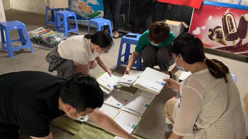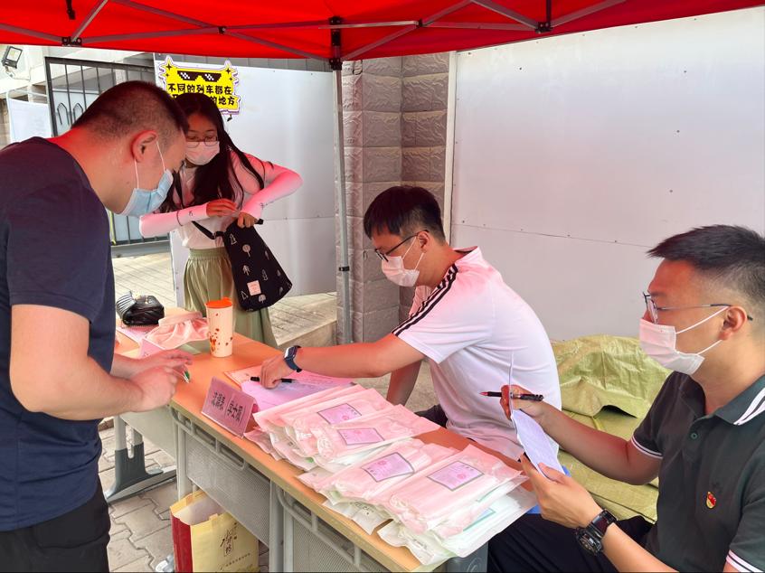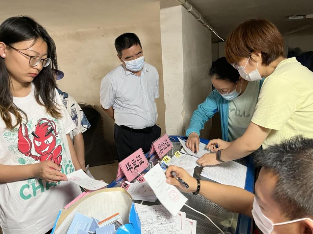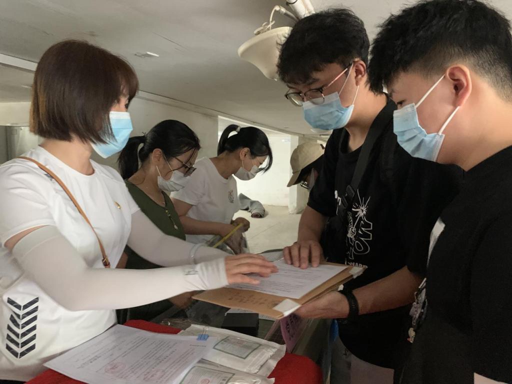在公司返校离校工作点,工作人员进行员工流调表收取,调档函收取、员工信息注册、党团组织关系转接,以及毕业证学位证等相关证书领取等工作,实现一站式服务。