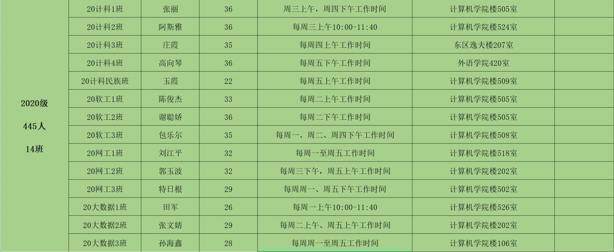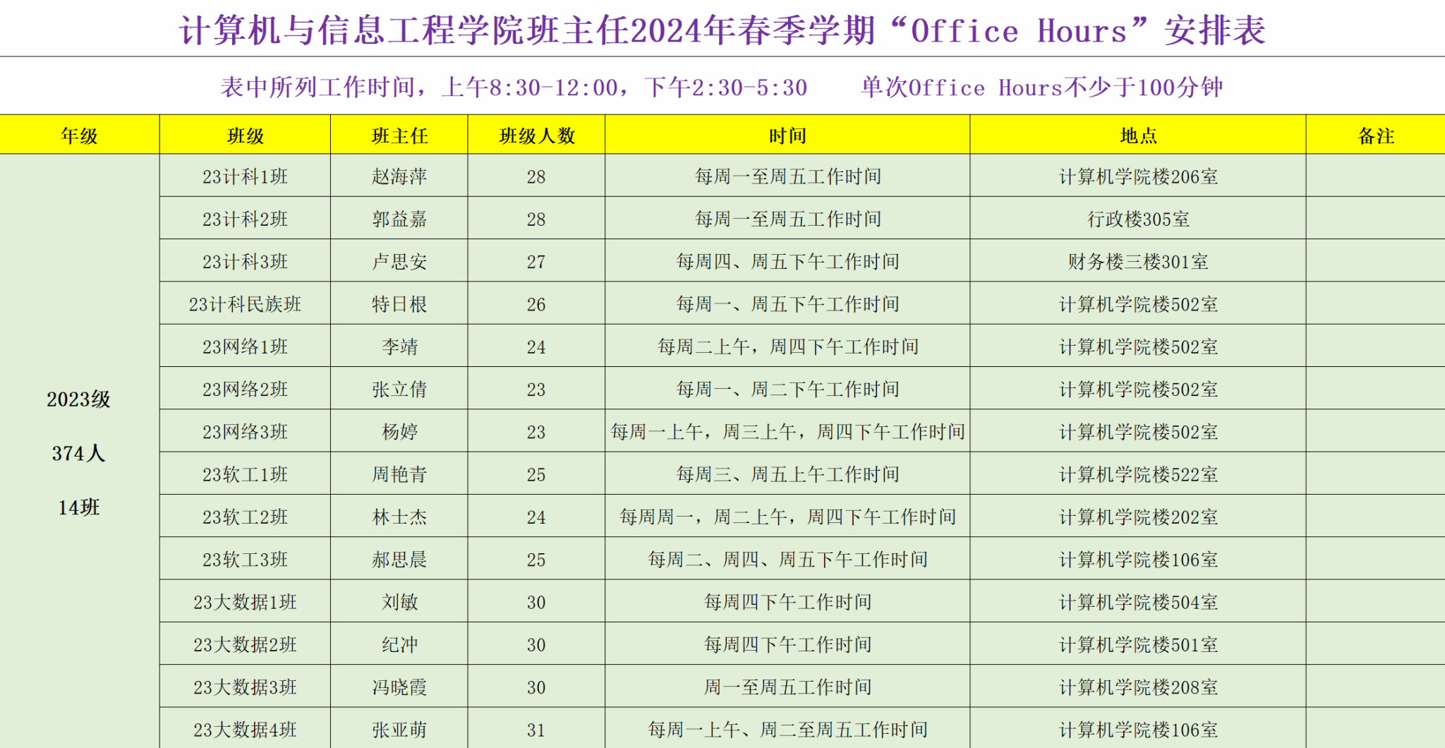 附件1:2024年春季学期班主任“Office Hours”时间表