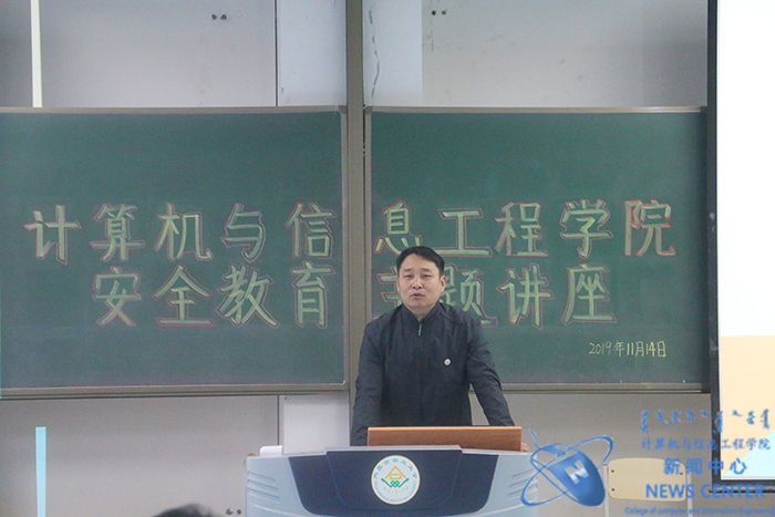11月14日晚,公司于南教116教室开展安全教育主题讲座。本次讲座由员工工作处副处长白海林老师主讲,学办主任兼分团委书记庄霞、学办老师孙海鑫出席本次活动,19级新生到场聆听。