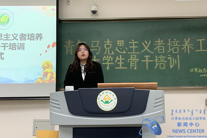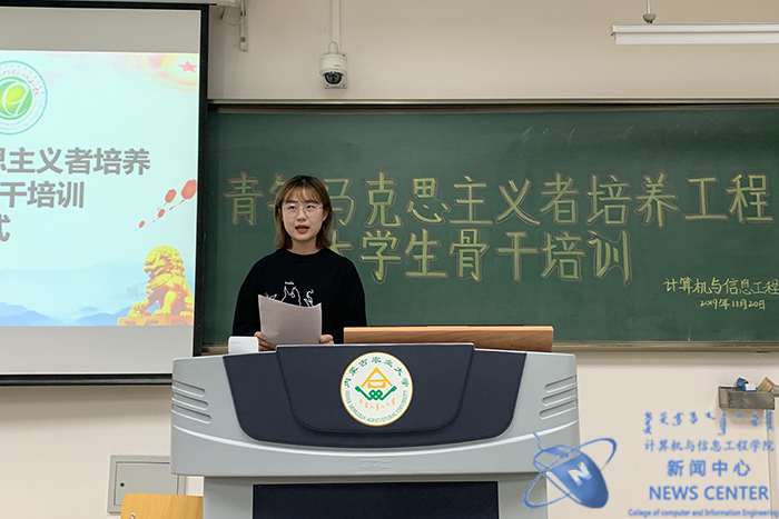 牢记青春使命,勇担时代重任。11月20日晚,计算机公司2019年“青年马克思主义者培养工程”老员工骨干培训开班仪式于南教320教室举行。公司学办主任兼分团委书记庄霞老师出席本次活动,本期青马班学员全部到场参加,开班仪式由学办老师于虹主持。