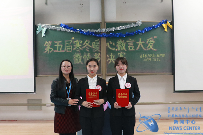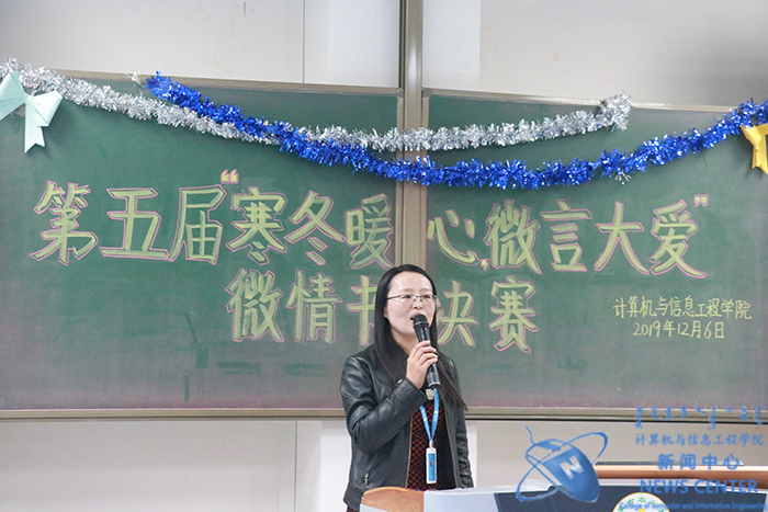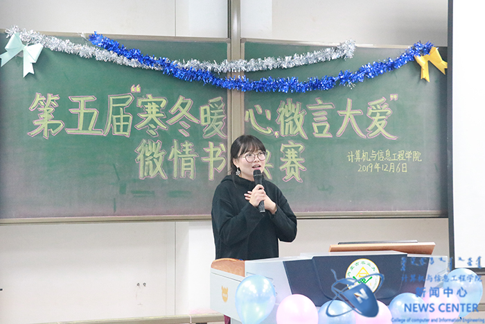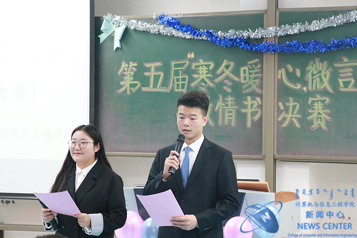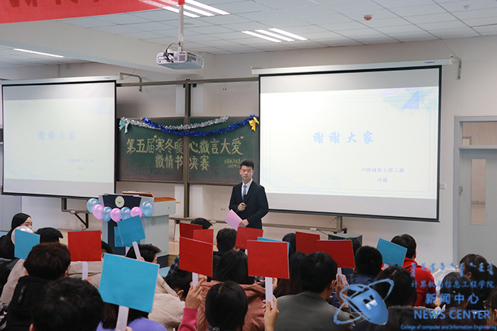 爱难言,锦书托。12月6日晚,由计算机院分团委承办的心理健康教育一院一精品活动——第五届“寒冬暖心,微言大爱”微情书评比大赛于南教114教室温情收官。公司党委副书记田军老师、学办主任兼分团委书记庄霞老师出席本场活动嘉宾,公司知途教育企业班主任康文峰老师等担任活动评委。