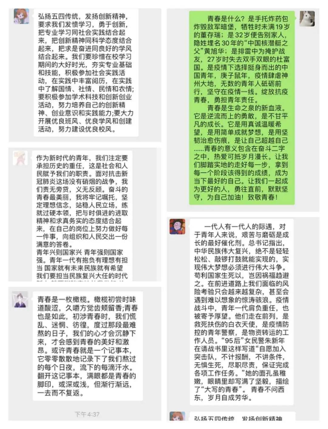 五四青年节到来之际,习近平总书记向全国各族青年寄语,激励公司学子从那场伟大的爱国运动中汲取今日奋斗的精神资源和价值自信。公司高度重视,5月3日起,组织公司学子热议习近平总书记寄语,各团支部团员青年进行线上学习,开展分享交流、青年热议等线上活动,迅速兴起学习宣传贯彻总书记寄语精神的热潮。