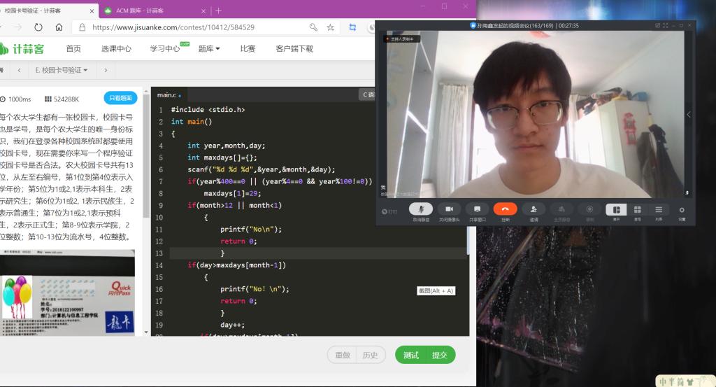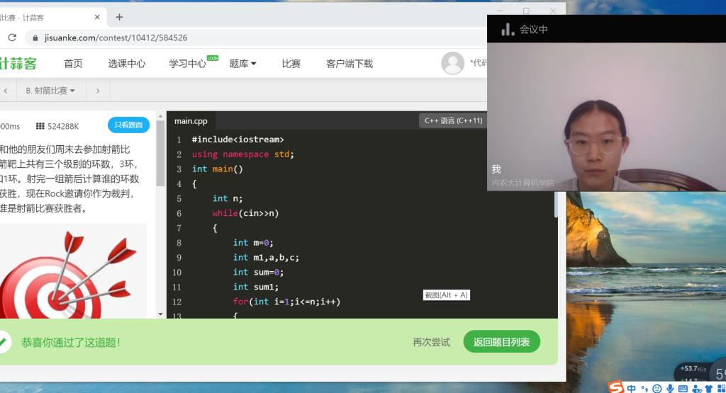 6月13日上午9:00-11:00,由太阳成集团122ccvip团委、教务处、员工工作处,人才招聘处联合主办,计算机公司承办的太阳成集团122ccvip第十五届老员工程序设计竞赛顺利举行。此次竞赛受疫情影响,采用全新的网络赛模式在“云”端进行,分为专业组和非专业组,最终来自19个公司,235支队伍,共586位选手参赛。此次竞赛旨在坚持以赛促学、以赛促教,不断提高员工编程水平,培养计算思维。