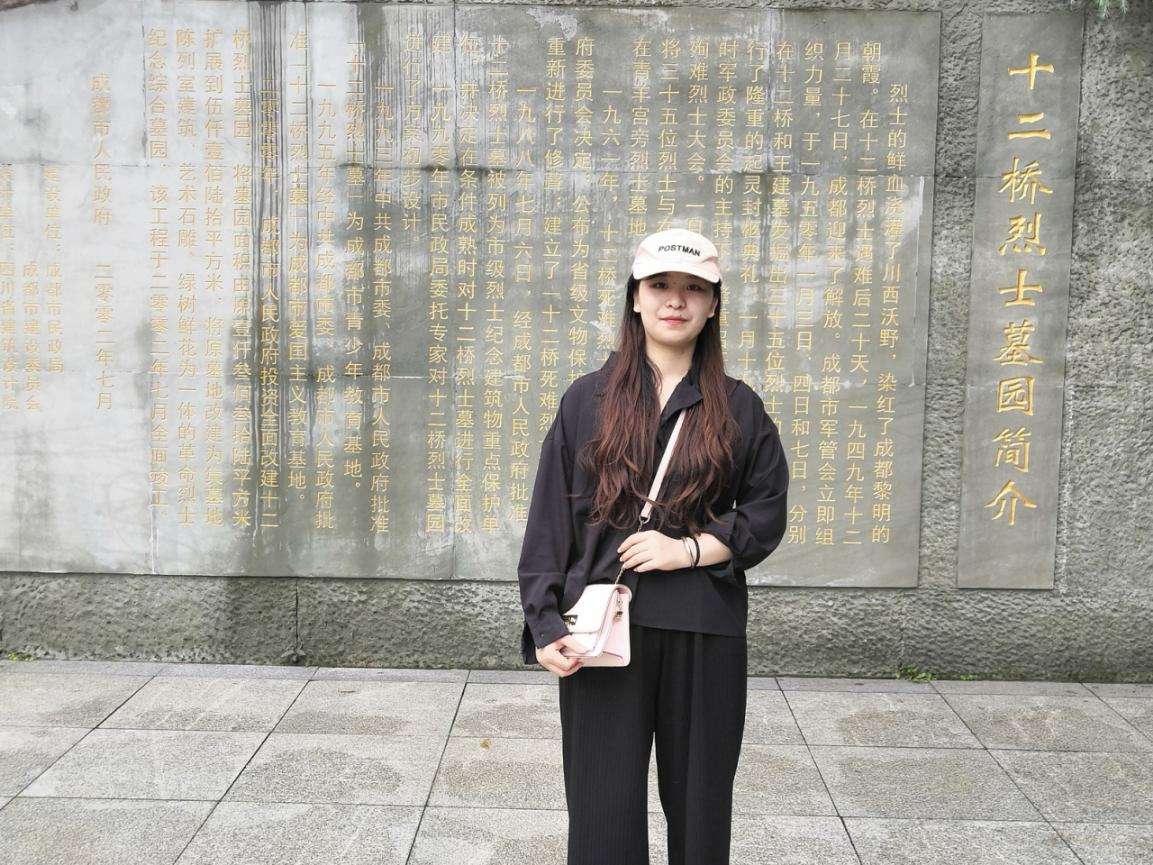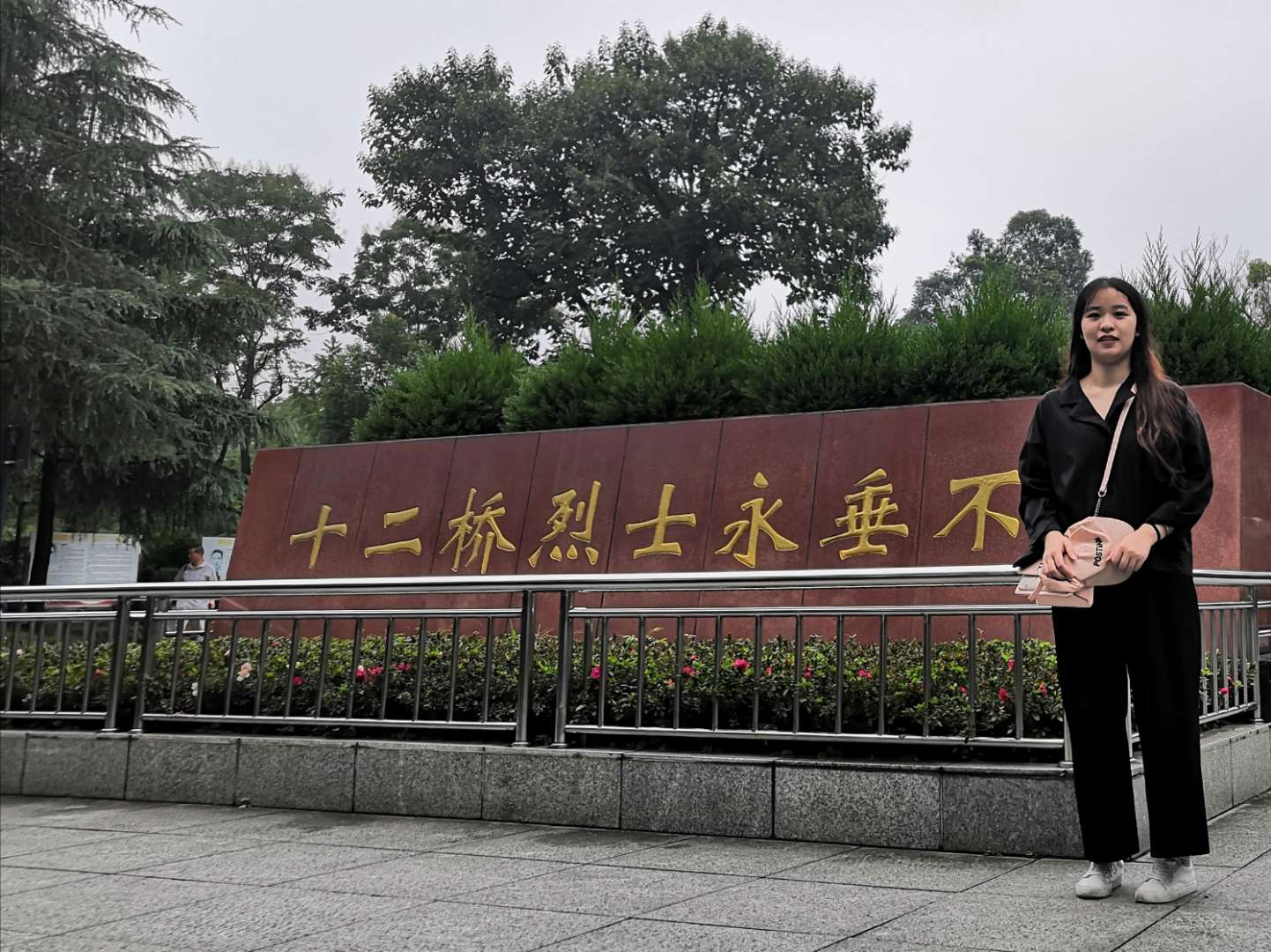 成都实践分队成员胡渝前往十二桥烈士墓观瞻各位革命烈士的讲解告牌,对十二烈士墓园的简介与来历进行详细了解。在参观结束后,革命烈士无私奉献死而后己的精神震撼着实践队员,表示要铭记英烈们不惧严刑拷打,大义凛然,慷慨赴死的英勇事迹,继承发扬先烈们的意志。