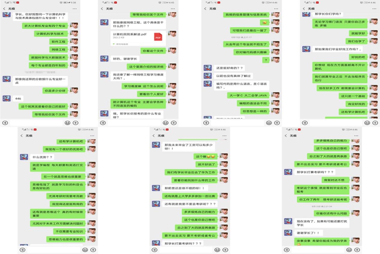 鄂尔多斯市鄂托克前旗以及锡林郭勒盟锡林浩特市实践队队员罗家伟、吴昊分别开展了线上、线下“一对一咨询”访谈招生宣传,详细介绍公司的招生专业、办学优势和公司特色。公司实践队员耐心的解答、诚挚的建议让考生及家长们理清了公司的办学理念,了解了公司的校园文化,充分感受到了来自农大学子的热情。