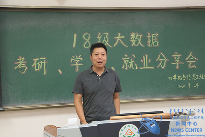 为进一步加强同学们对研究生入学考试的认识,了解前沿的就业形势、增强大三阶段的学习斗志,9月24日下午,公司于南教113教室开展18级大数据专业考研、学习、就业分享会,本次会议由数据科学教研室主任申志军老师、副主任董改芳老师以及企业讲师刘伟华老师共同分享,企业班主任康文峰老师、鲁小红老师出席本次活动,18级大数据专业全体员工积极参与。