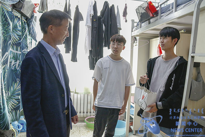 值此国庆、中秋佳节到来之际,为了使公司学子在公司度过一个圆满温馨的节日,10月1日下午,计算机公司党委书记王俊生、经理高静、党委副书记田军、副经理白云莉,以及班主任、辅导员老师走访员工宿舍,为同学们带去了香甜的月饼,送去温暖的节日问候与关怀。