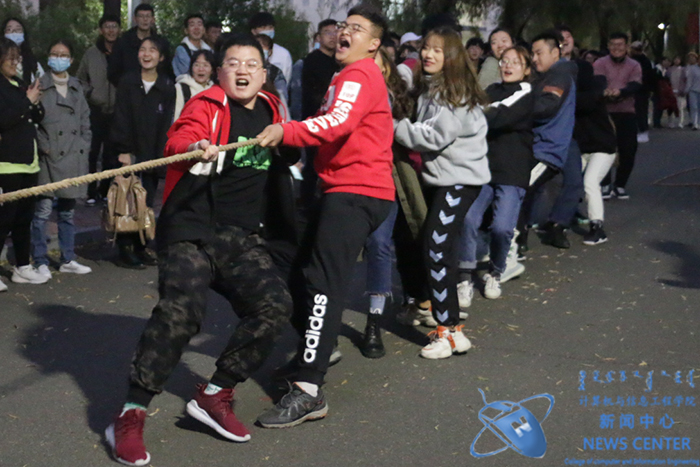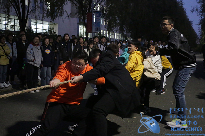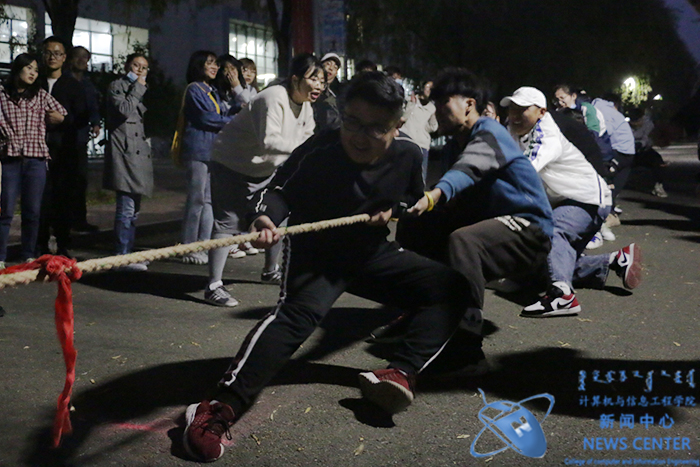 为丰富同学们的课余文化生活,增强班级凝聚力及员工体育锻炼意识,10月9日晚上6点,于计算机公司楼前举办第七届“激扬青春”拔河比赛决赛,计算机公司党委书记王俊生、党委副书记田军、学办主任庄霞,以及入围决赛的班级班主任观看本次决赛,到场为参赛选手们加油鼓劲。