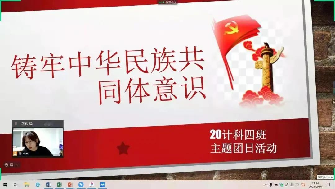 为帮助同学们进一步了解中华民族共同体意识,深入贯彻民族团结意识,二月中旬,计算机公司18级、19级以及20级各团支部于线上开展“铸牢中华民族共同体意识”主题团日活动。各团支部积极参与。