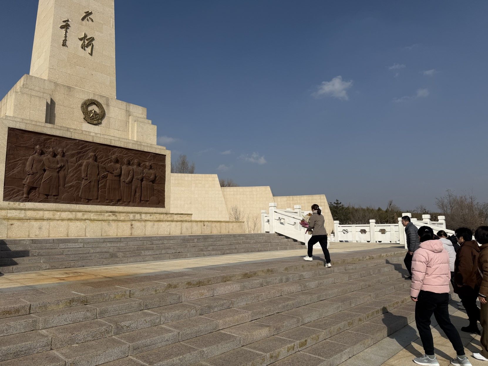 下午2点,参加此次活动的教职工在公司集合后统一乘坐大巴出发,前往大青山红色主题公园。作为本次活动的第一站,大青山红色主题公园以其丰富的历史文化底蕴和红色教育资源,为教职工们提供了一次深刻的思想洗礼。在参观过程中,大家认真聆听讲解员的介绍,深入了解革命先辈的英勇事迹和奋斗精神。随后,全体教职工在人民英雄纪念碑前庄严肃立,向革命先烈致敬并敬献鲜花,表达对英雄们的崇高敬意和深切缅怀。