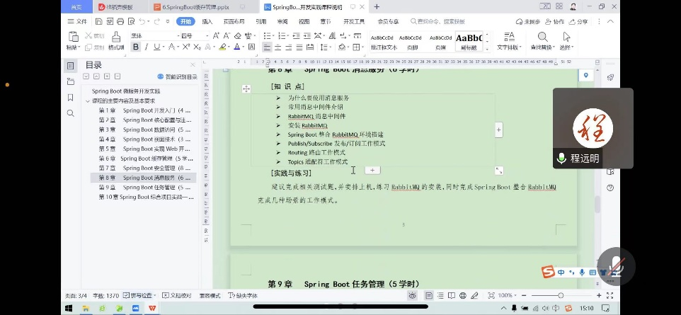 本次会议首先由企业讲师程远明分别对《Springboot微服务开发实践》和《Spark平台技术》两门课程进行15分钟的说课和30分钟的试讲,其次由公司老师针对企业讲师在授课过程中存在的问题进行了讨论,最后待企业讲师退出会议后,公司老师针对两门课程的授课情况进行讨论及打分,并决定聘用该企业讲师作为2022-2023第二学期对应课程的授课讲师。