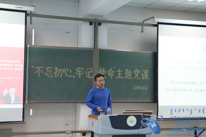 党课开始,党委副书记田军以为什么要学党章,党章是什么为切入点,重温了共产党人的初心和使命,简要阐述了中国共产党的发展历程。田老师主要从“党章是党的总章程、总规范”“党的根本章法是党员和重培对象的必修课”两方面为同学们深入剖析,在新形势角度下,使同学们充分了解党的十九大修改党章的背景以及党章的发展历史进程。讲座最后,田老师结合党的十九大报告以及党章中的描述,从人民的立场、党的奋斗目标以及中华民族伟大复兴的中国梦介绍了现阶段中国共产党人的初心和使命。讲座内容深入浅出、内容丰富,同学们纷纷表示,要把“初心”和“使命”贯穿到学习、生活的各个环节,坚定理想信念,提升党性修养。