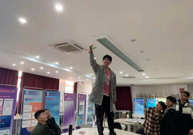 为提高同学们的团队协作能力,本次活动分为四个小组开展“保护鸡蛋”游戏比赛,在自由落体中用吸管和胶带保护鸡蛋不碎。其中,有小组首先想到了三角形的稳定性,用吸管围成三脚架,并将鸡蛋固定在中心;还有小组将鸡蛋用吸管全方面包围,利用吸管缓冲保护鸡蛋不被摔碎。同学们充分发挥想象力与创造力,为活动增添了不少乐趣。各小组进行高空“保护鸡蛋”pk展示,现场气氛活跃。活动最后,两位老师进行总结,表示现阶段要打好基础,努力学好专业知识,为将来就业打下坚实的基础,同时给予同学们对于未来规划的一些建议。
