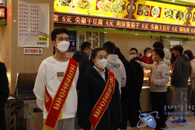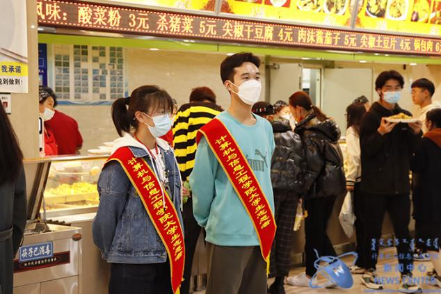 活动期间,志愿者们统一佩戴绶带于新区食堂二楼就餐区、餐盘区等区域开展志愿引导工作。志愿者们手持引导牌,引导员工科学点餐,理性消费,拒绝铺张,文明用餐,合理饮食,科学打包,避免浪费,倡导用餐时不大声喧哗等文明餐桌礼仪,营造文明就餐环境,践行健康餐饮新风尚。公司志愿者用行动践行志愿精神,引导广大同学将口号变成行动,将行动化为习惯,以实际行动弘扬中华民族勤俭节约的优秀传统。