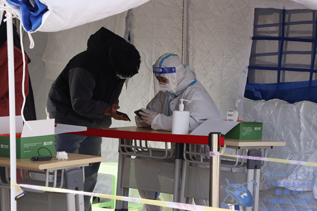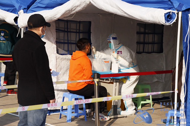 学办老师孙海鑫负责带领公司东区员工的核酸检测取样工作,学办老师尤月、查黑日玛组织安排公司新区的同学于员工公寓C座和D座楼下集合,以分批次的方式带领同学们有组织,有纪律的到往生科楼下进行全员核酸检测取样工作。检测现场,由公司员工党员组成志愿服务队,组织公司同学进行核酸采样,全体员工根据核酸检测工作需要以及公司安排携带身份证,全程佩戴口罩,在志愿者和工作人员的安排下分十人一组,按照防疫要求保持安全间隔距离,依次到检测处采集咽拭子。采样现场以单口进入,单口离开,人员不交叉,采样结束后迅速离开现场的方式进行核酸检测取样工作,以保证检测现场的流通性与流动性,防止产生人员聚集。本次核酸采样活动中志愿者的奉献付出,体现了公司员工面对疫情不退缩,敢担当的精神,彰显了公司员工党员积极向上的精神面貌。