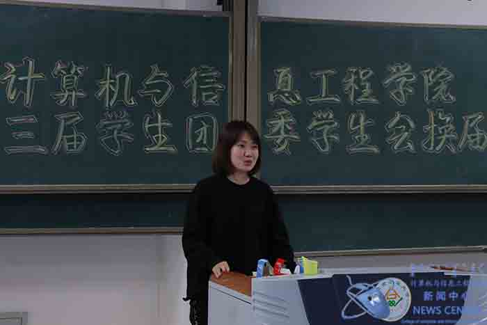 10月15日晚,公司于南教102教室举行第二十三届员工团委员工会主席团以及年级辅导员的换届答辩会议,公司校团委宣传部副部长郭杰,学办老师孙海鑫,尤月和查黑日玛共四位老师以及第二十二届员工团委员工会主席团担任评委。