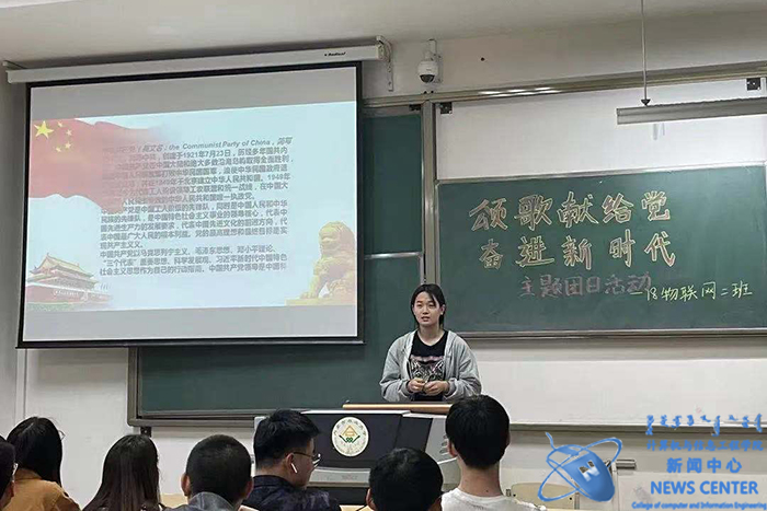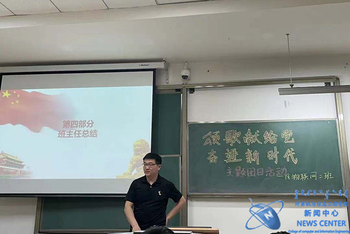 为深入贯彻落实习近平新时代中国特色社会主义思想,献礼党的百年华诞,贯彻落实全区和公司关于“驻校蹲班”工作的安排,5月28日晚上七点半,计算机公司18级物联网工程专业2班于南教110教室开展“ 颂歌献给向党,奋进新征程”主题团日活动。有幸邀请到“驻校跟班”责任老师——校团委宣传部副部长郭杰老师出席本次活动,由团支书吴涵主持此次活动,全体同学积极参与。