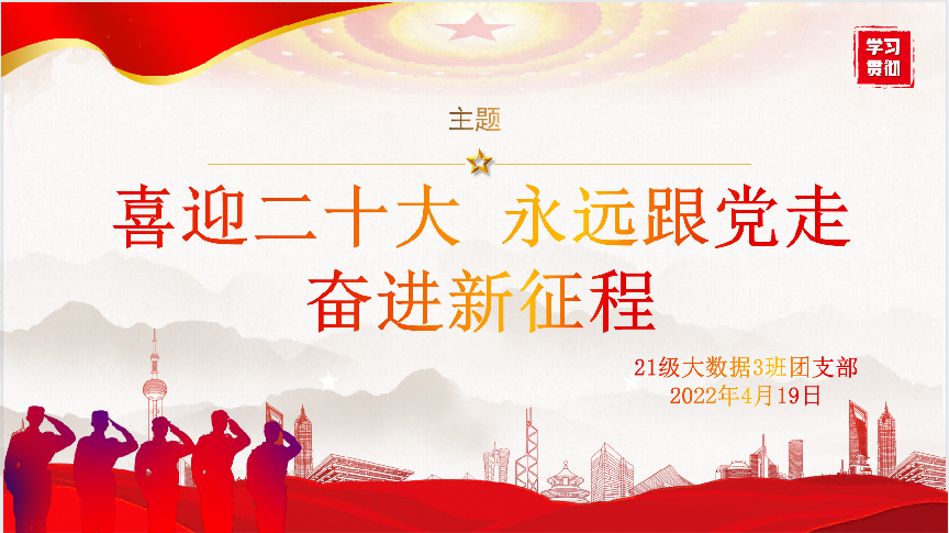 为迎接党的二十大,增强同学对于党和国家的使命感,21级计算机1B2班、21级大数据3班、21级计算机1B5三个团支部于4月中旬分别开展了以“喜迎二十大,永远跟党走,奋进新征程”为主题的线上团日活动。
