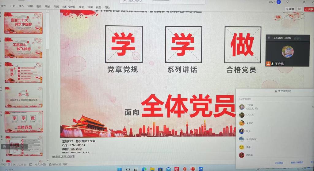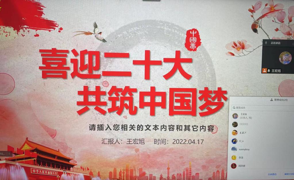 为了加强公司学子对于新时代青年应坚定理想信念的理解与认识。4月17日下午,公司21级计算机专业B3班于线上举行“喜迎二十大,永远跟党走,奋进新征程”主题团日活动,班长、团支书等班委主持本次活动,21级计算机专业B3班全体同学积极参加。